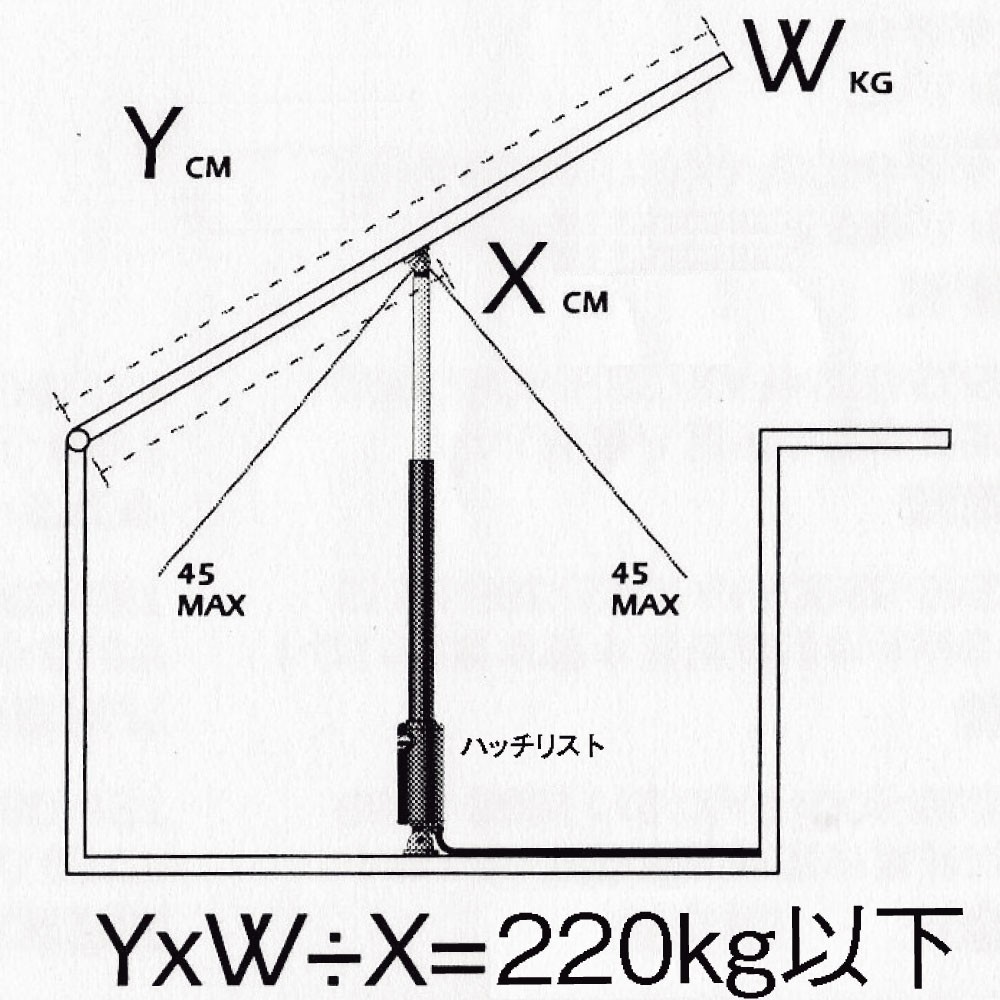 ●重いハッチ等をボタン1つで楽々開閉します。耐荷重はかなりのもので計算式によると、1本当たり220kg程度となります。作動にはオプションのロッカースイッチが必要となります。