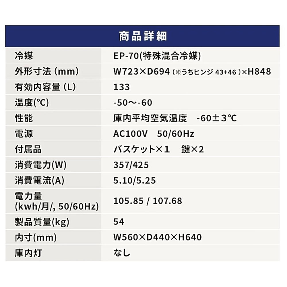 ●−50℃~−60℃の温度帯なら、脂の美味しい魚も96~100%の凍結率なのでたんぱく質の分解や脂肪の酸化を抑えて、いつでも鮮度抜群!