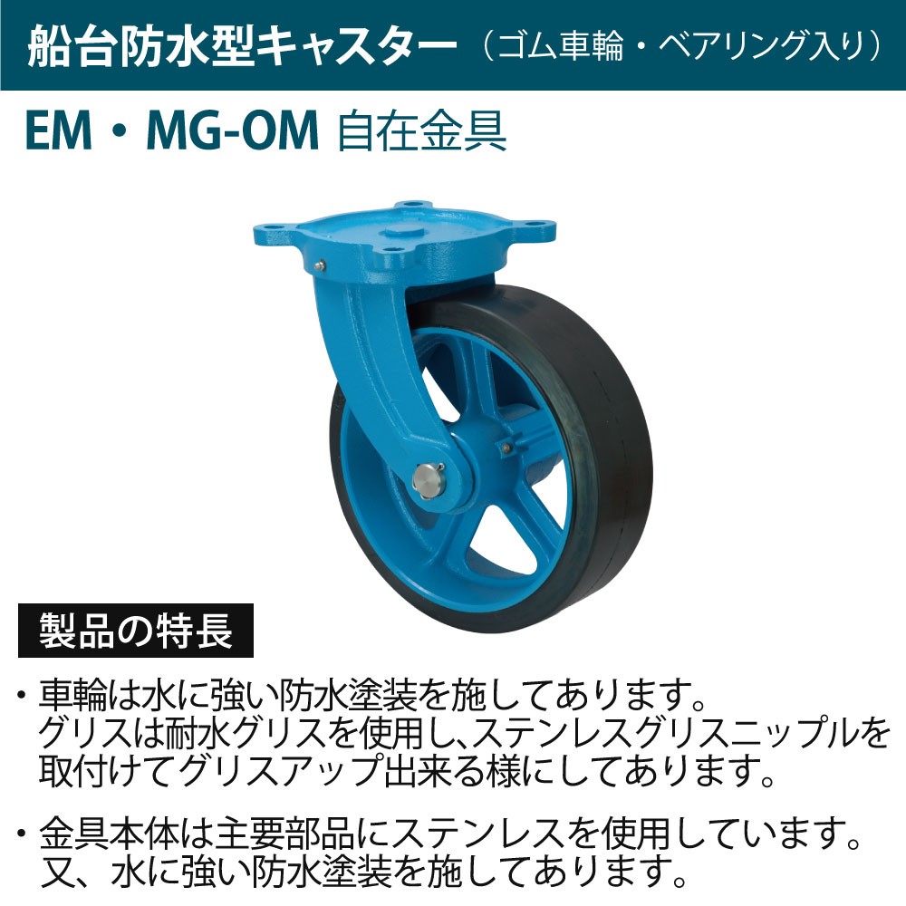 船台防水型キャスター ゴム車輪 自在金具付 EM-MG-OM 200×90