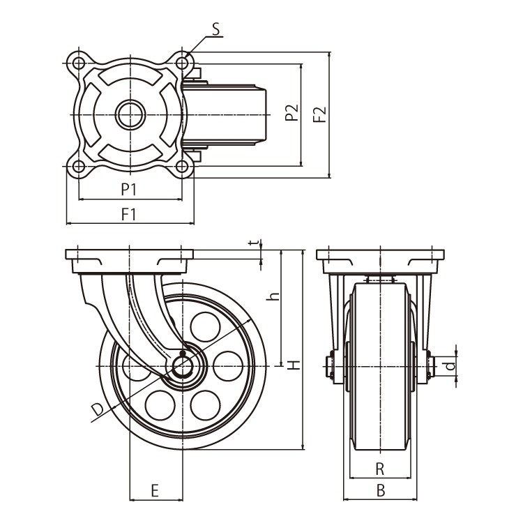 ●車輪の芯材及び取り付け金具は、強度に優れたダクタイル鋳鉄製です。(FCD450)