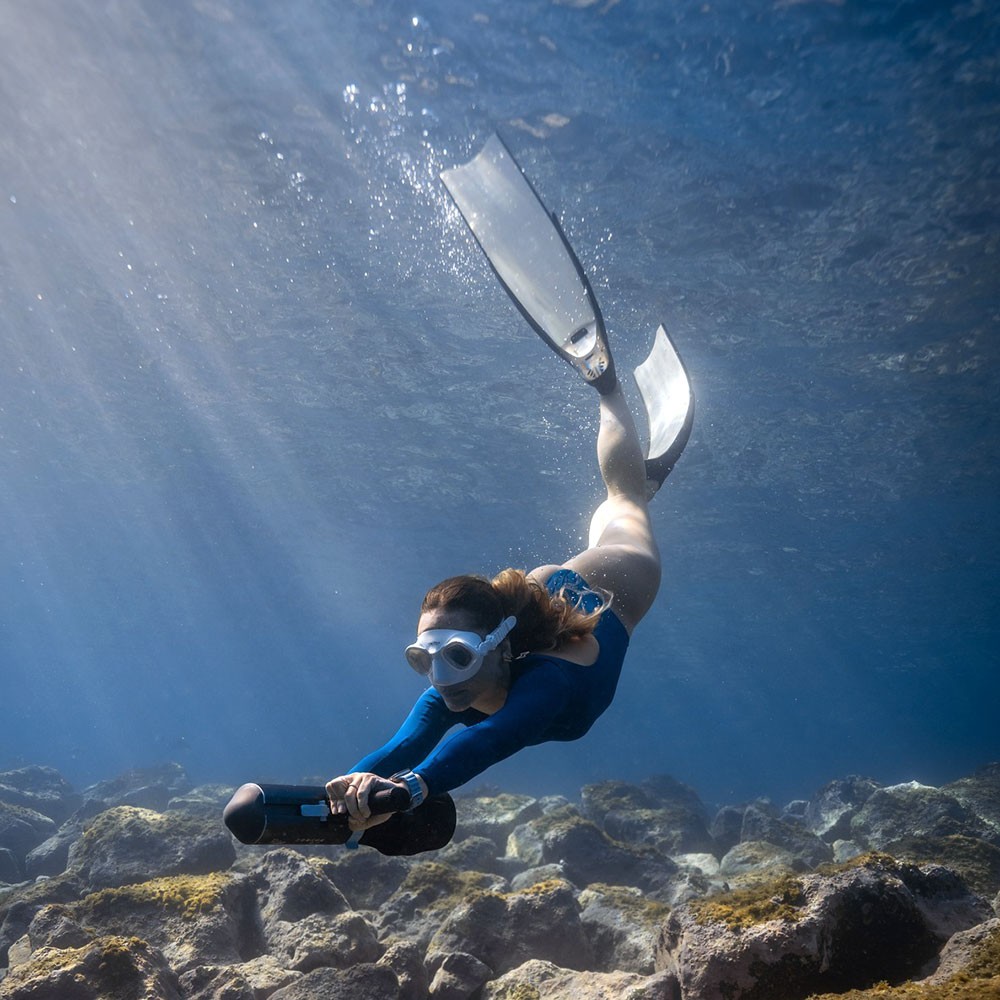 ●SUPアドベンチャーを広げる2 in 1 アクアティックスクーター。1台で水上も水中も思いのままに、未知の世界を自由に探検できます。