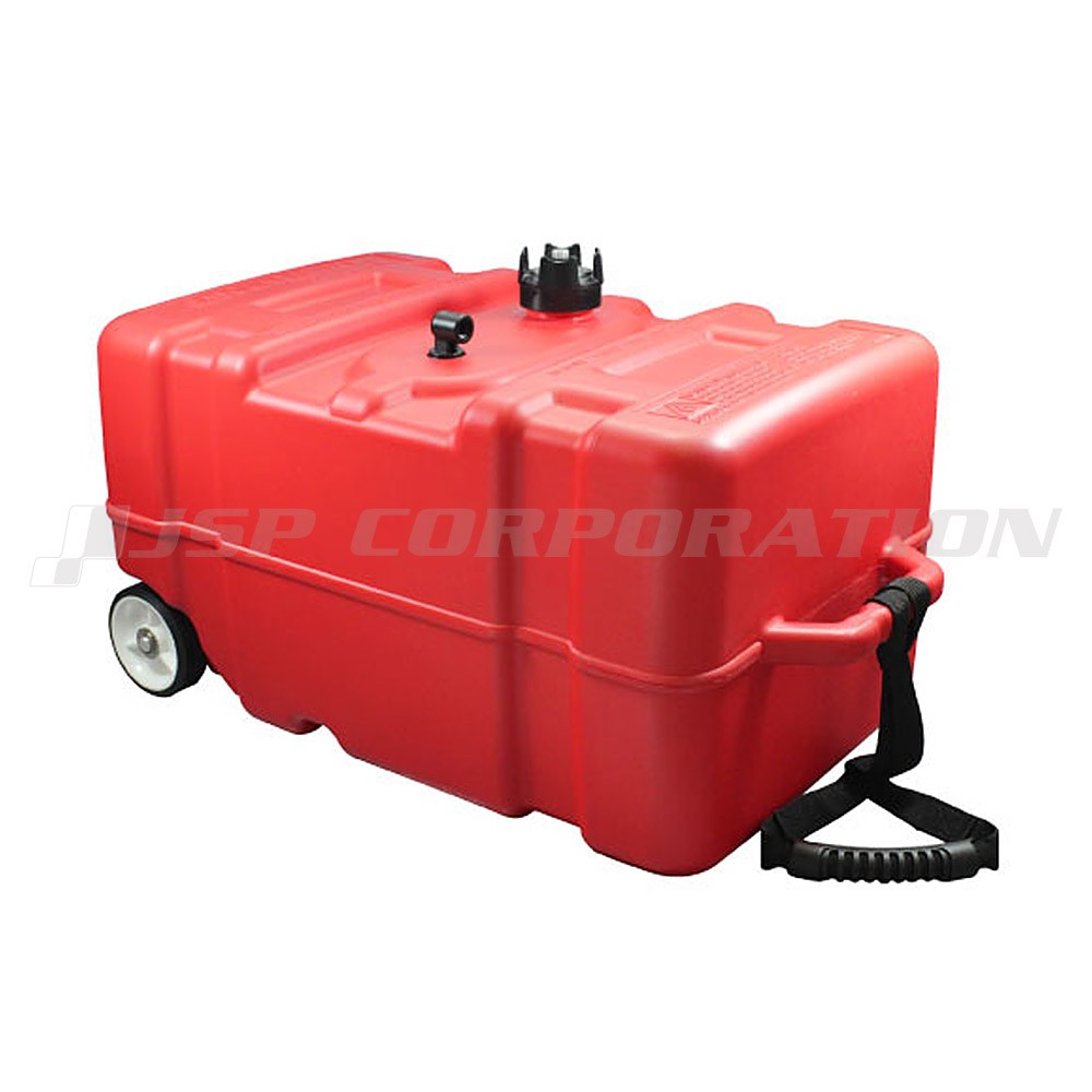 ●大容量、45Lのポリ燃料タンクです。軽量ながら頑丈な設計です。1/4”NPT受け口が付いておりますので、各船外機メーカーのタンクフィッティングを取り付けてご使用頂けます。