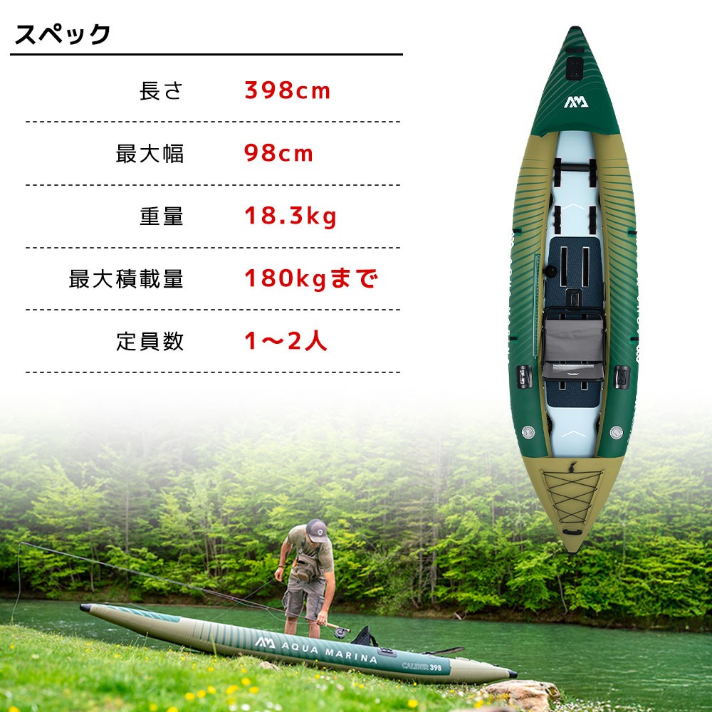 AQUA MARINA(アクアマリーナ)CALIBER カリバー カヤック インフレータブル 1~2人乗り商品番号:CA-398 メーカー希望価格:¥182,600 【2026年末年始福袋セール 】SUP・カヤック ¥87,120(税込) セール期間: 2025/12/25〜2026/01/13 獲得予定ポイント:870ポイント ショッピングモールでの取り扱い情報 楽天市場店 ¥87,120 Yahoo!店 ¥87,120 送料 北海道 青森県 岩手県 宮城県 秋田県 山形県 福島県 茨城県 栃木県 群馬県 埼玉県 千葉県 東京都 神奈川県 山梨県 長野県 新潟県 富山県 石川県 福井県 岐阜県 静岡県 愛知県 三重県 滋賀県 京都府 大阪府 兵庫県 奈良県 和歌山県 鳥取県 島根県 岡山県 広島県 山口県 徳島県 香川県 愛媛県 高知県 福岡県 佐賀県 長崎県 熊本県 大分県 宮崎県 鹿児島県 沖縄県 ※送料について [注意事項]※離島(全国)は沖縄県の送料になります。 在庫状況 在庫あり ※説明を見る 注意マーク 注文数量 ▲ ▼ 購入ボタン