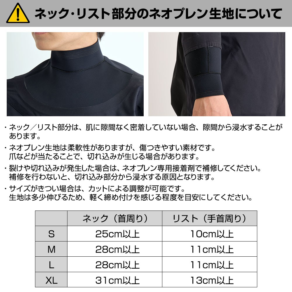 ■素材:3mmクロロプレーン、YKKアクアシール、ネックシール(クロロプレーンシー)、リストシール(クロロプレーンシール)