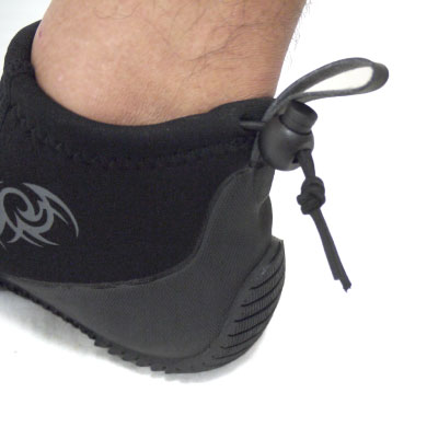 ![]() 足首のドローコードでフィッティングを高め、脱げにくさと砂利の浸入を防ぐ。 |