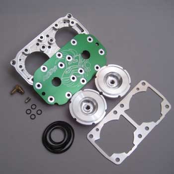 ●キットを組込み、キャブレターをリセッティングするだけで手軽にパワーアップを実現。厚め(1.5or2.0mm)の専用ベースP/Kを使用することで、シリンダーを削る事なく容易にポートタイミングを上げ、さらに専用のスペシャルドームを組み合わせることで燃焼効率の高次元化を可能に!