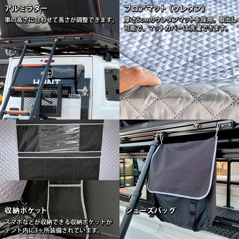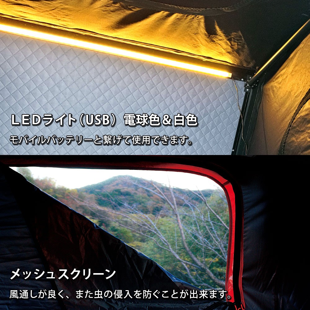 ●ルーフテントサイドオープン型と専用タープ鵜がセットになった商品です。