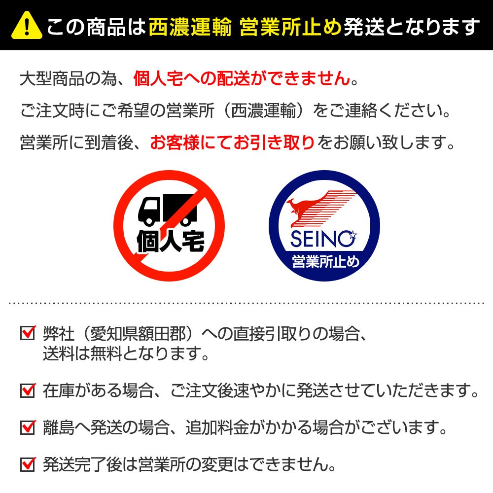 ※お届け先が法人の場合、立地や道路状況により運送会社の判断で配達可能な場合があります。配達不可の場合は西濃営業所引き取りとなりますので、あらかじめご了承下さい。配達可能かどうかは、事前にお問い合わせ下さい。