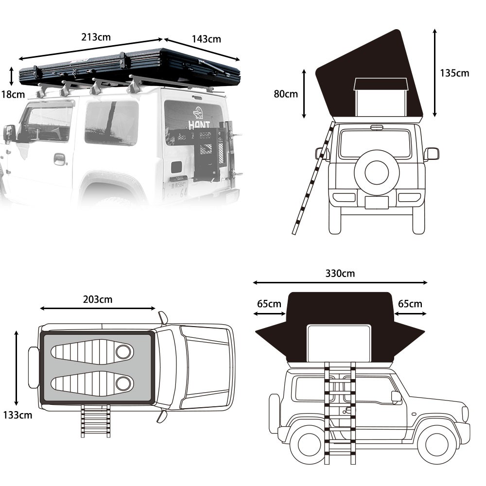 ルーフテント タープセット サイドオープン型 オールシーズン対応 SD10-11 2-3人用