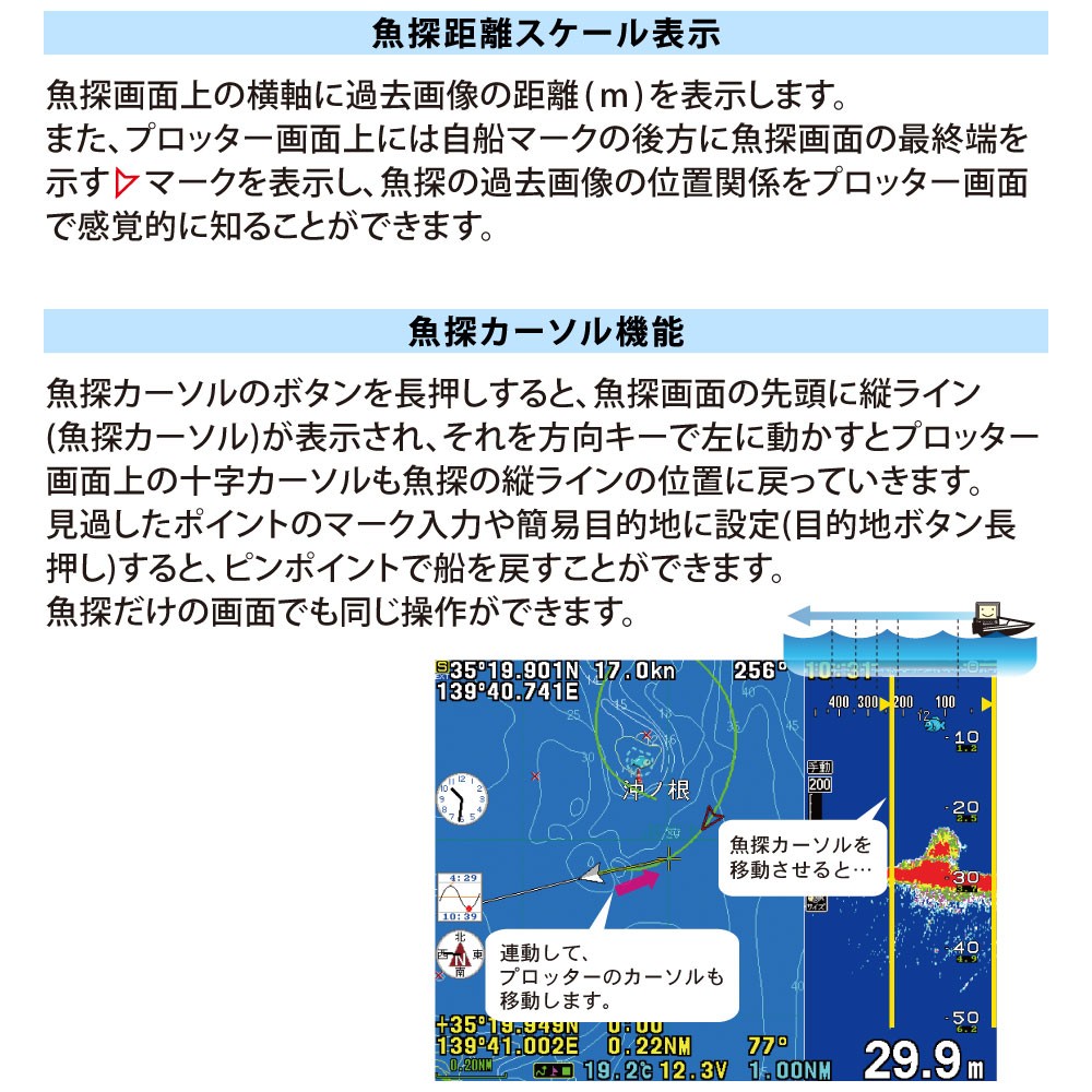 ■その他魚探機能:自動深度、自動感度、魚探拡大