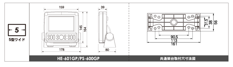 5型ワイドカラー液晶 GPSプロッター魚探 HE-601GP GPSアンテナ内蔵 300W 200KHz 単周波