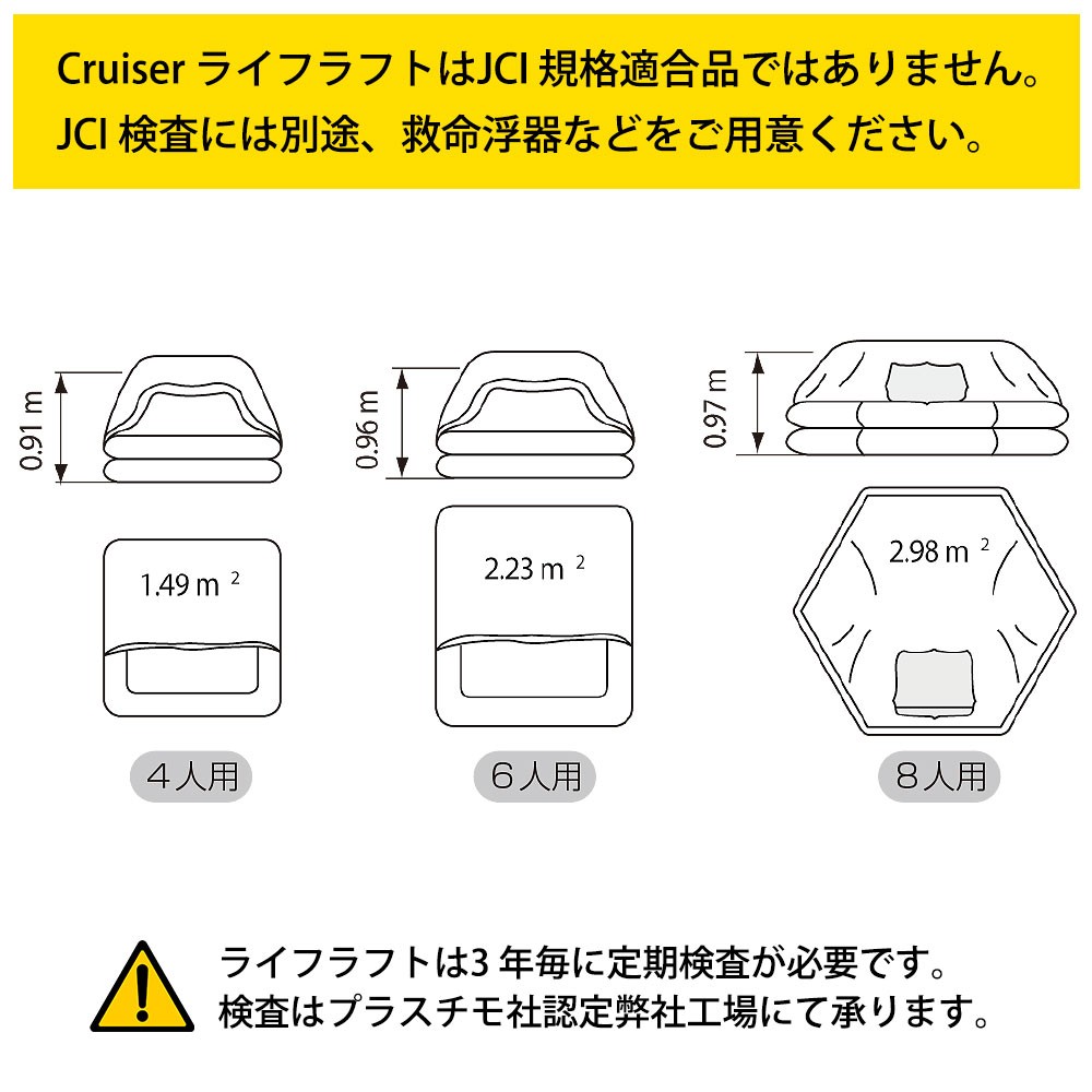 ●CRULSERライフラフトはJCL規格適合品ではありません。JCL検査には別途、救命浮器などをご用意ください。