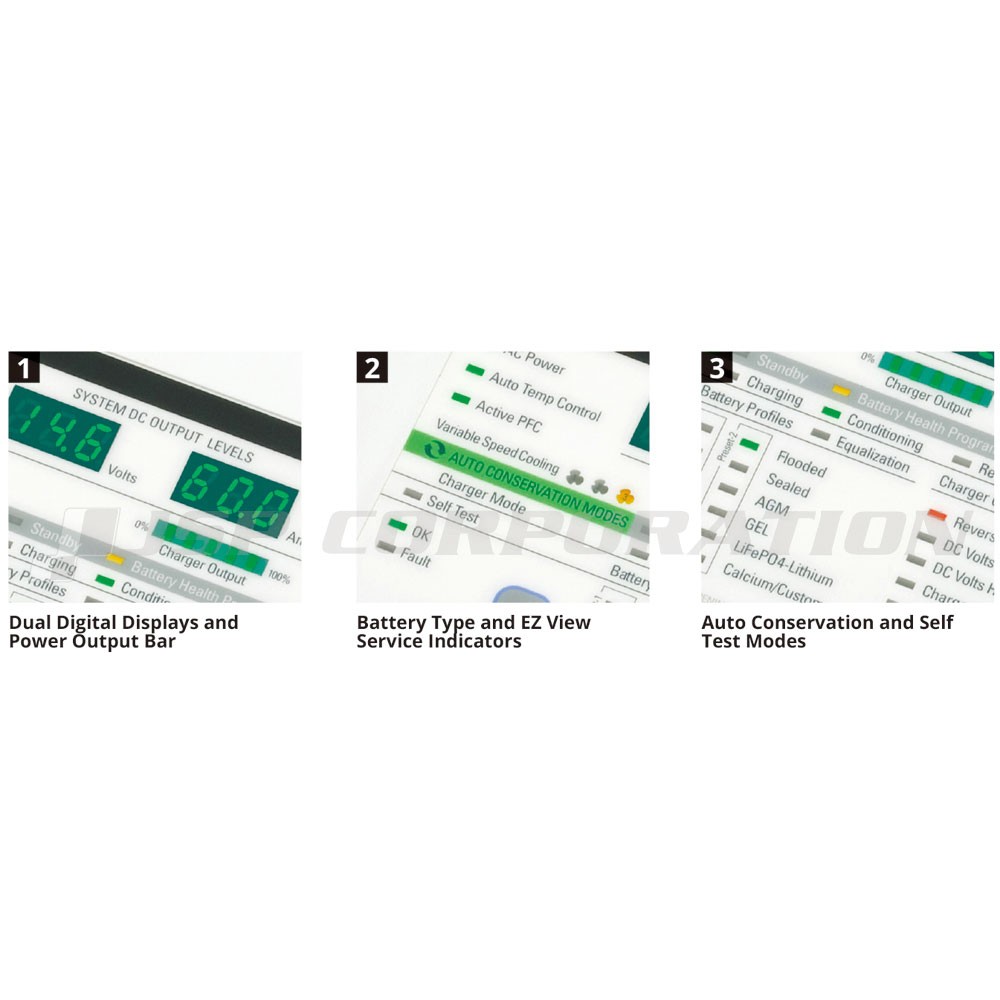 ●4ステージで急速充電するバッテリーチャージャーで、鉛、SEALEDAGM、GEL、LiFePO4Lithium、Calcium/Customバッテリーを充電できます。