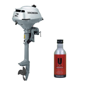 お得なホンダ2馬力船外機付きセットです。すぐに使えるようにエンジンオイル200mlも付属しています。