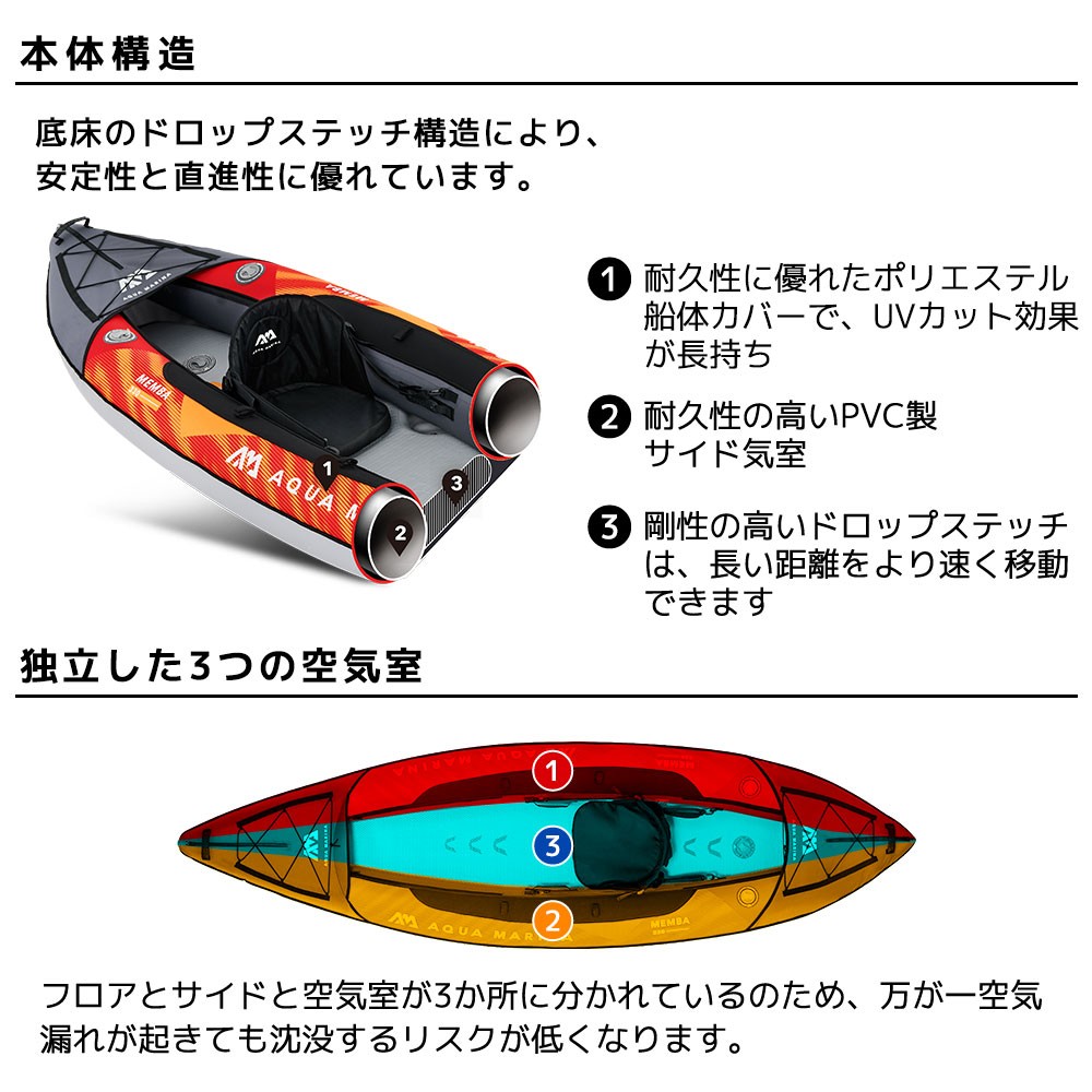 ●デッキ部分は丈夫なドロップステッチ構造を採用し剛性が高い為、安定した乗り心地と推進力を実現。