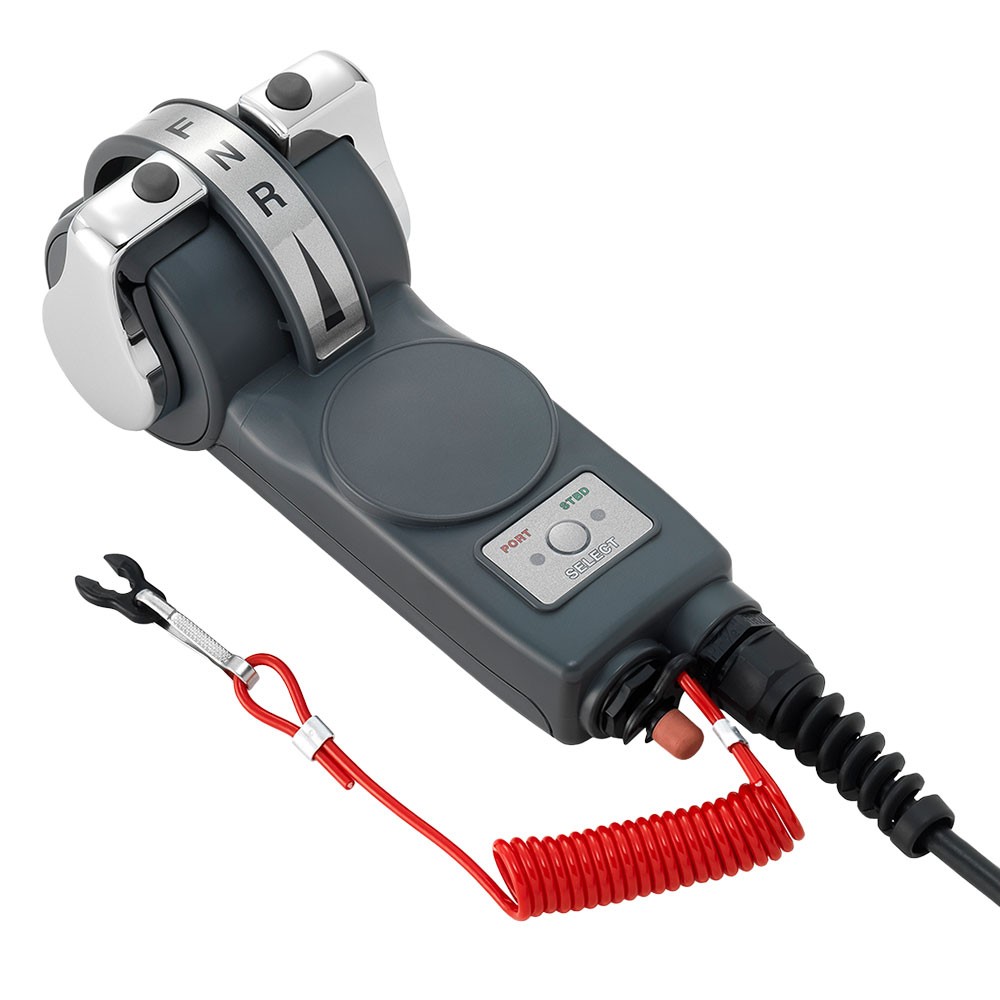 ●画像は、エンジン2基用のハンディリモコンです。1基用はレバーが1本となります。