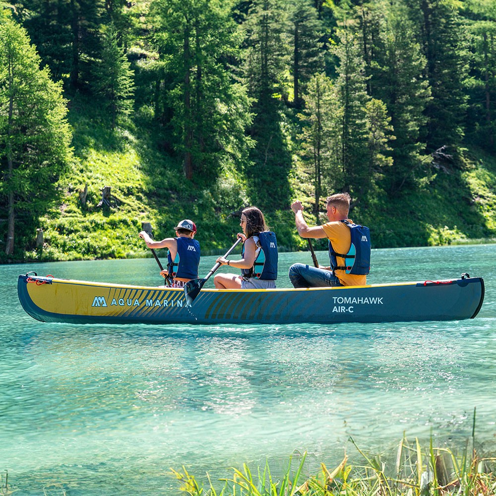 ●持ち運びや保管に便利な、2~3人乗りインフレータブル式カヌーです。