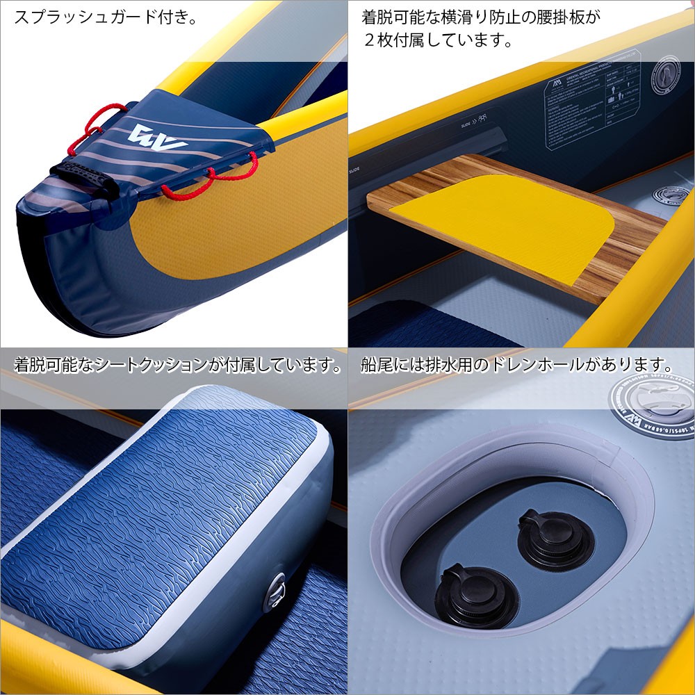 ●横滑り防止加工が施されたベンチシートとドロップステッチクッションが装備され、快適なパドリングを提供します。