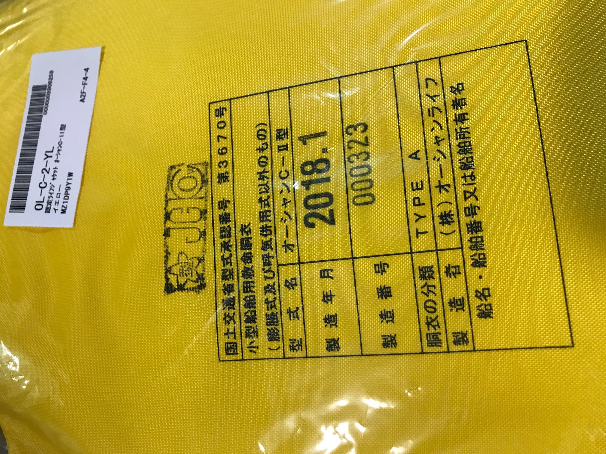 【展示品】認定ライフジャケット オーシャンC-II型 イエロー