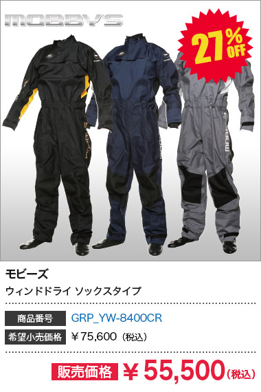 もう1点の【ウィンドドライスーツ】は豊富なカラバリが魅力。