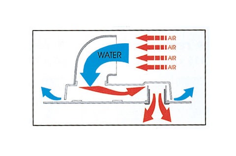 ●雨や波が入り込んでも、ボックス内部で水が分離され、排水口から外へ排出されます。