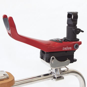 ●速攻レバーを引くだけでロッドホルダー部が垂直に倒れ、仕掛けの投入が素早くできます。仲通しタイプの竿には最高の機能です。
