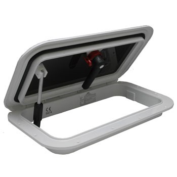 ●デッキへ取り付けた場合凸高さ2cmと薄く、自重が軽いハッチです。 ●あまり強度を必要としない箇所への設置に最適。 ●ウインチハンドルにより、外側から開閉が可能。