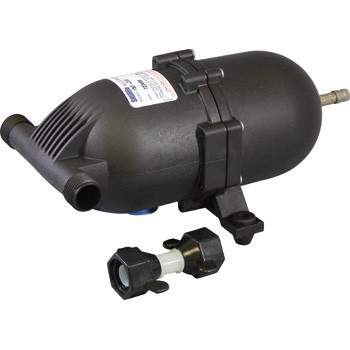 ●水圧を感知して作動するプレッシャーポンプを保護するための必需品。圧力スイッチにより作動するプレッシャーポンプは、蛇ロが緩んでいたり、水漏れがあると頻繁に作動・停止を繰り返しポンプの故障の原因となります。ポンプの先にアキュムレータタンクを取付けるとタンク内のダイヤフラムが膨脹・収縮し作動の間隔を長くし、ポンプを保護します。タンク内にはエアーが圧入されており、20~125PSIで使用可。