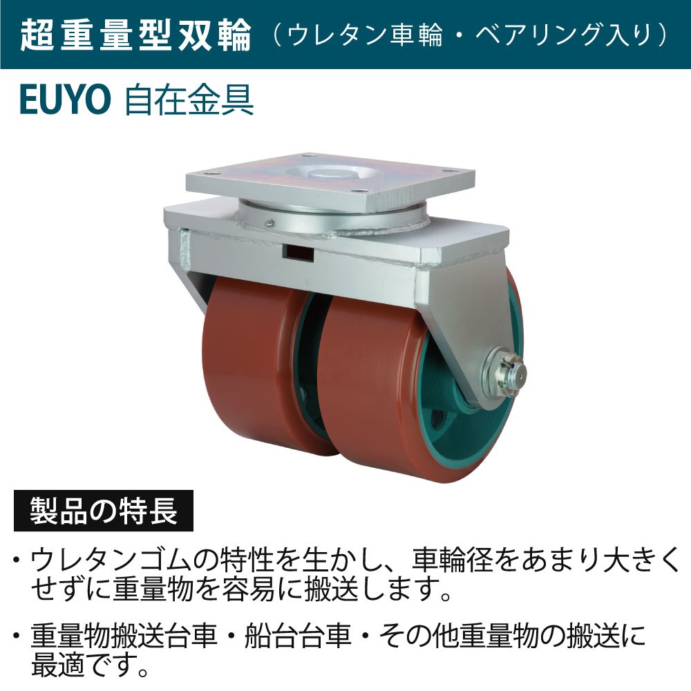 超重量型双輪キャスター ウレタンゴム車輪 自在輪 EUYO 250×90