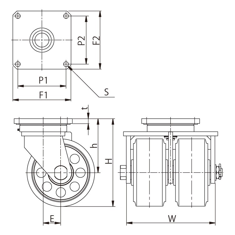■ボート用品 > 保管 > 船台・キャスター > キャスター(岡本工機) > 超重量型双輪キャスター