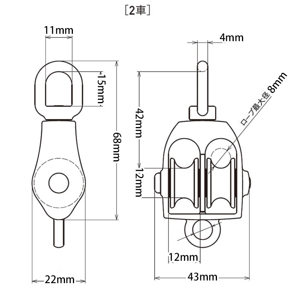 ■サイズ:(d)4、(L)68、(L1)15、(L2)42、(D1)12、(B)22、(B1)11、(B2)-、(t)12、(t1)43