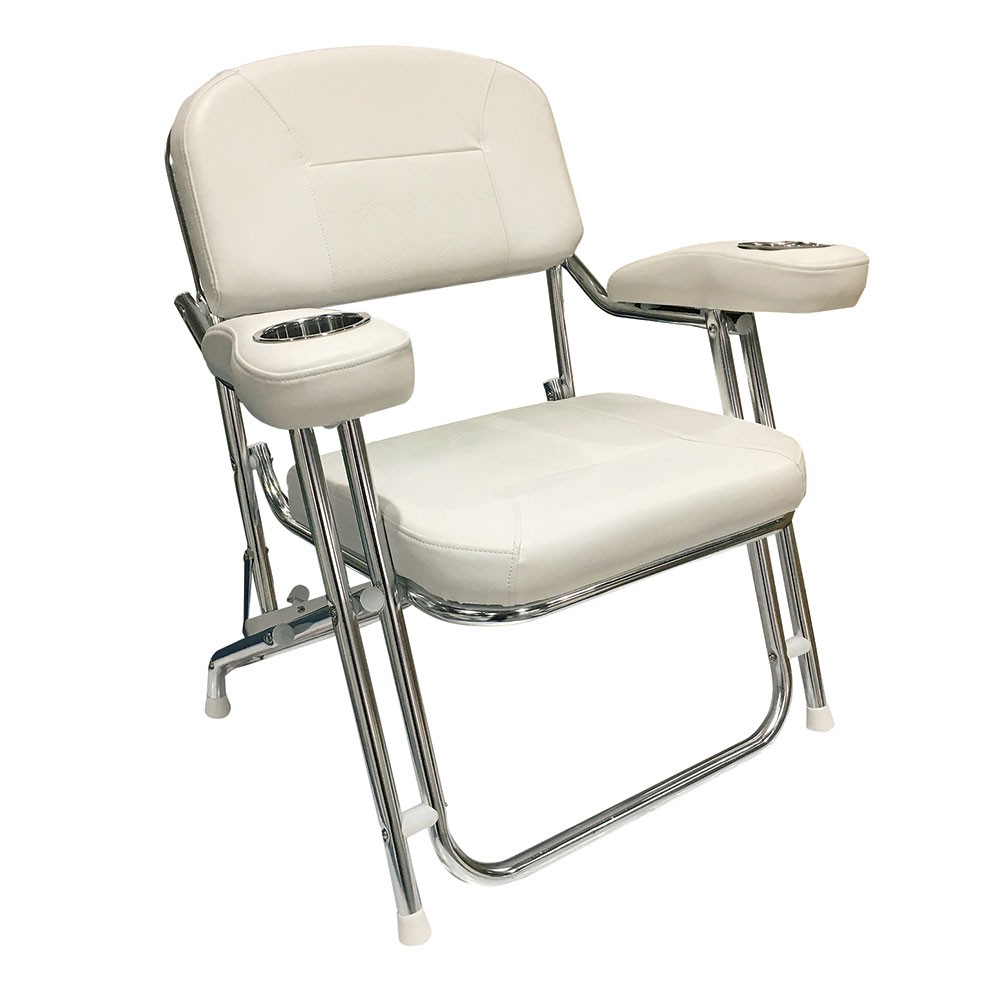 デラックスデッキチェア(折りたたみ式) デュアルカップホルダー付き ホワイト