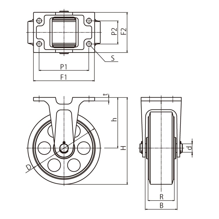 ●車輪の芯材及び取り付け金具は、強度に優れたダクタイル鋳鉄製です。(FCD450)