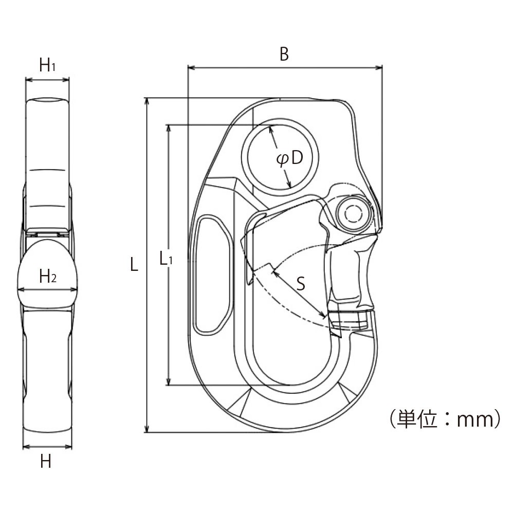 ■寸法:(S)32mm、(L)177mm、(L1)128mm、(B)109mm、(H)22mm、(H1)20mm、(H2)30mm、(D)30mm