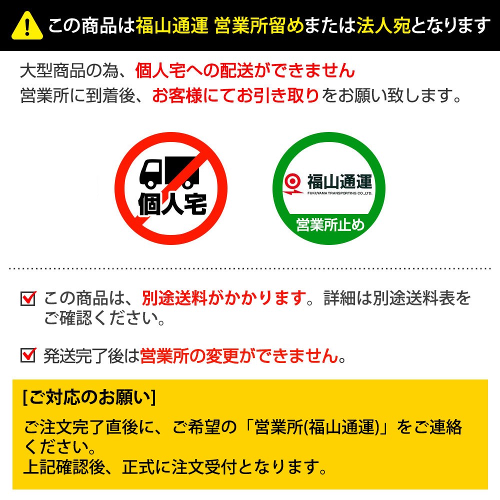 ※個人宅配不可商品の為、送り先は法人宛または運送会社(福山通運)の営業所止めのみとなります。