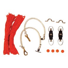 ●トローリングロッドのリールのラインをノックアウトにセットし、リードロープでアウトリガーロッド先端まで上げ下ろしできる必要部品一式が含まれています。