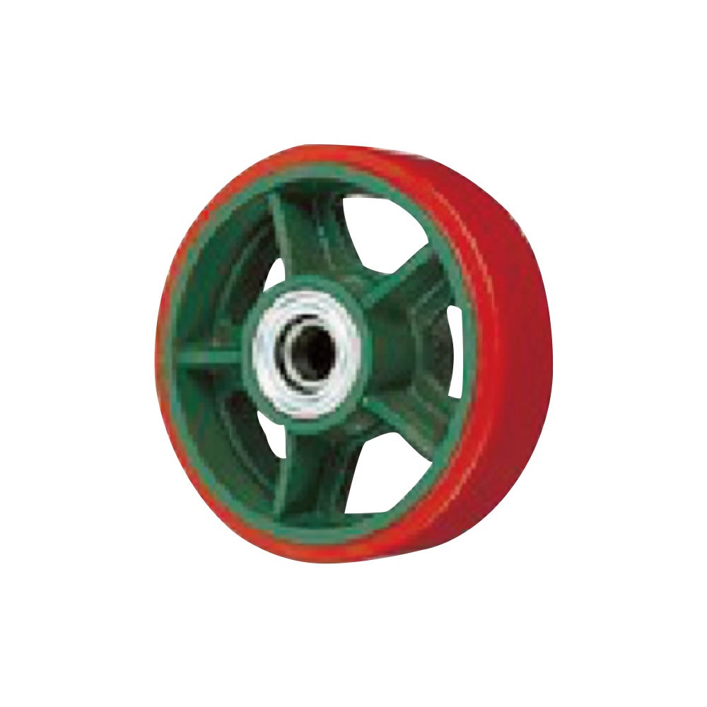 ●車輪はウレタン製のため、天然ゴムと比べクッション性には欠けていますが、その分耐久性に優れ、耐摩耗性では天然ゴムの10倍、耐荷重でも3倍の重さまで耐えることが出来ます。