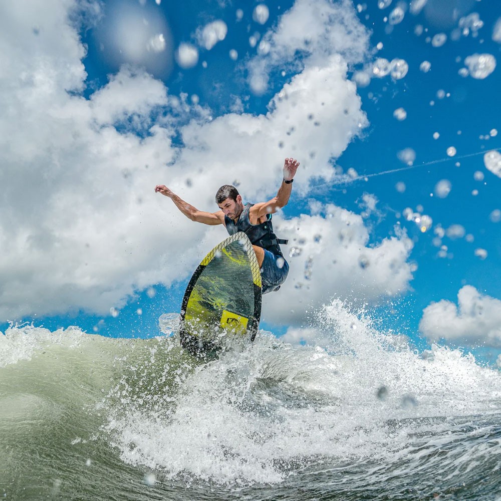●用途の広いウェイクサーフ/スキムまたはサーフボードの形状になっているため、初心者から中級者に最適です。