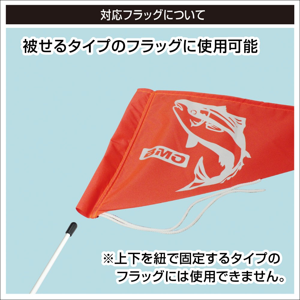 ●ポール先端に紐を固定する為の金具はついておりません。そのため、上下2箇所で紐を括る必要があるフラッグにはご利用いただけません。