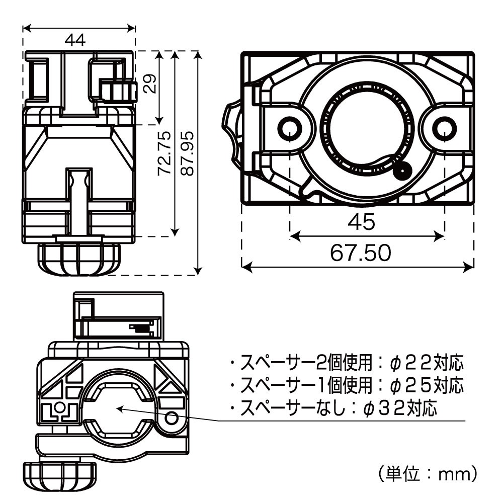 ※φ19・25mmパイプへ取付する場合は付属のスペーサーをご使用ください