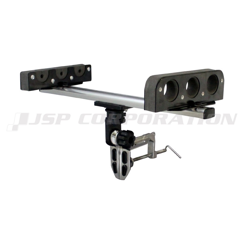 ●ロッドを3本まで収納できる横型のロッドホルダーです。ロッド固定部がスポンジになっているのでロッドを優しく包み、傷つけません。万力タイプのステンレスベースが付属しています