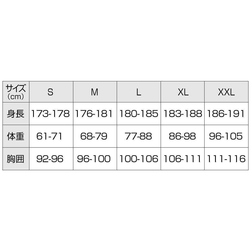 ■サイズ(cm):S(173-178)、M(176-181)、L(180-185)、XL(183-188)、XXL(186-191)