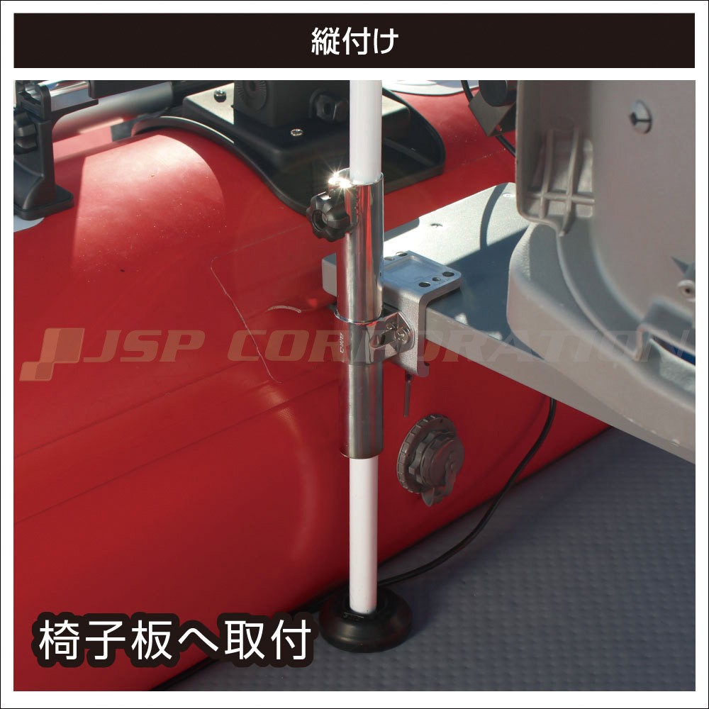 ●インフレータブルボートへの取付に充分な対応板厚を確保しつつ、限られたスペースでも邪魔になりにくいサイズとなっています。