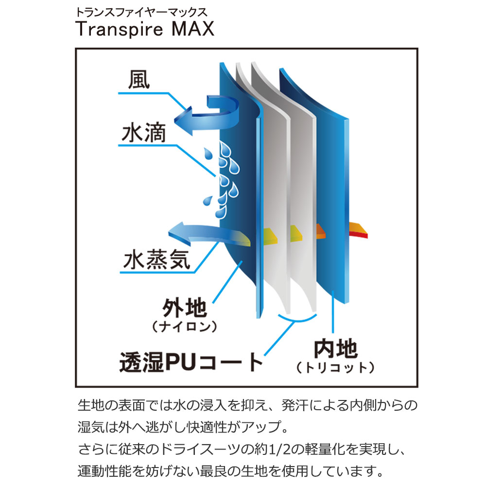 ■素材:ナイロンツイル(Transpire MAX)、YKKアクアシール、
