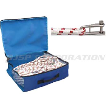 ●片側にキーピンシャックルがスプライスされた、メインハリヤード用のロープセット。収納などに便利なロープバック付き。
