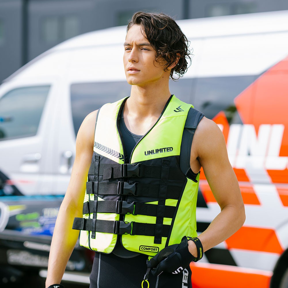 ●バックフラップ:すそがシートに当たってもフラップ式のためライフジャケットが肩浮しません。