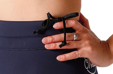 ショートパンツのウエスト部分は紐付きで固定可能。 アクティブに動きたい方にも安心です。