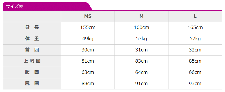 ■サイズ(身長cm):MS(155),M(160),L(165)