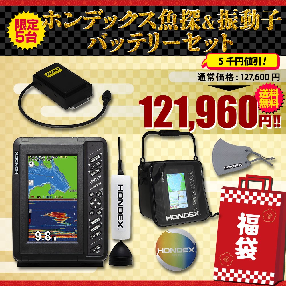 ■福袋内容:ホンデックスPS-711CN-WP ワカサギパック、BMOバッテリーアダプター、BMO製HONDEX魚探用バッテリー、