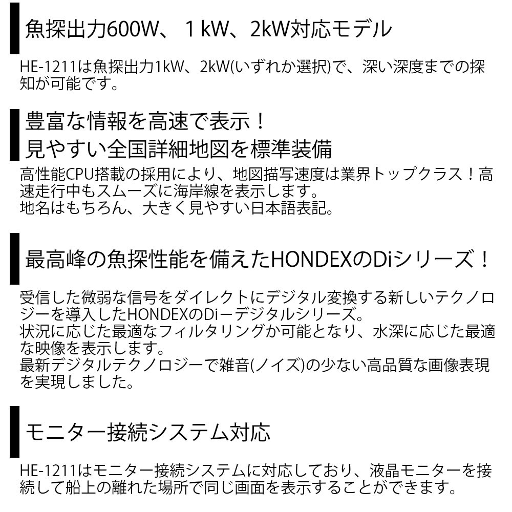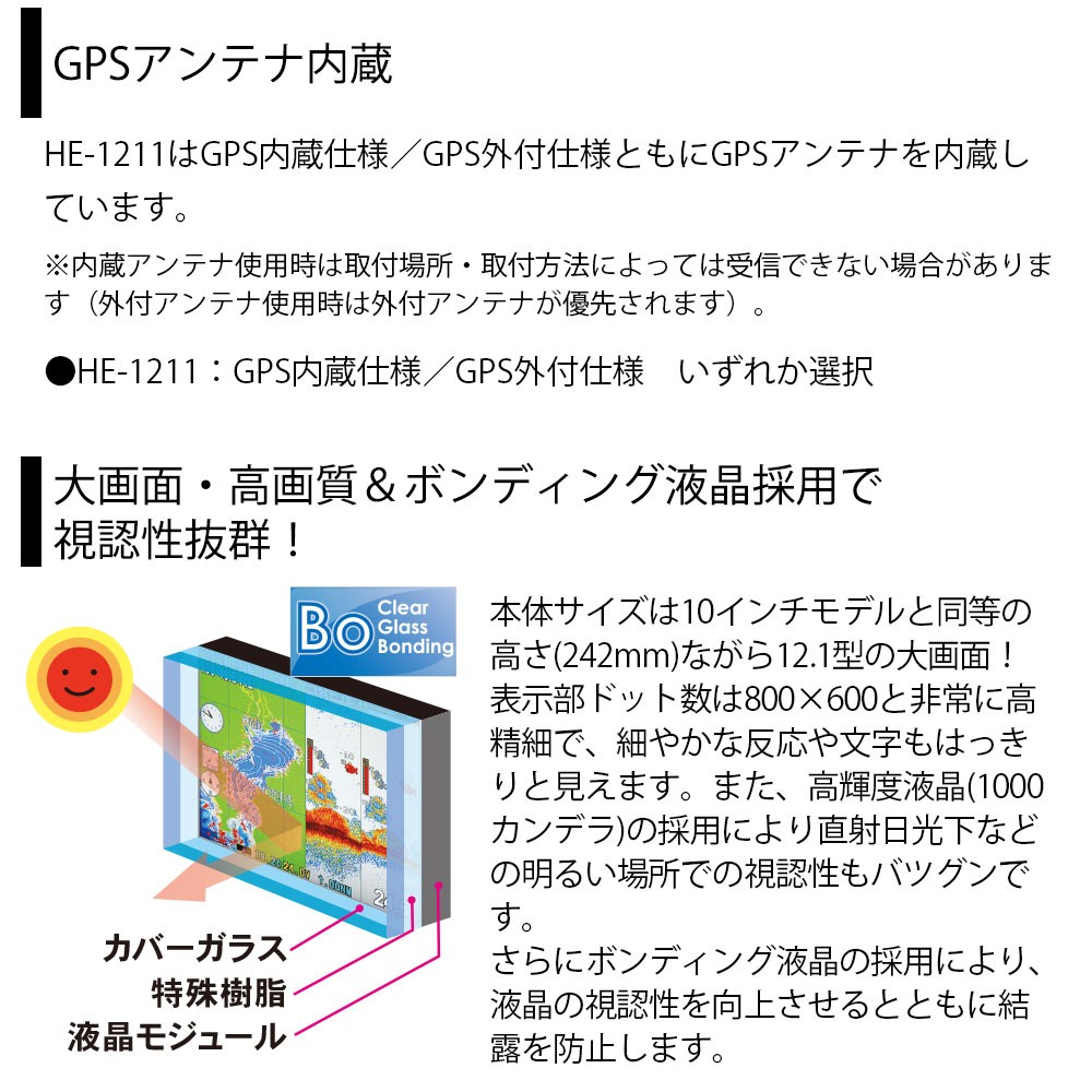 HE-1211 GPSアンテナ外付仕様 12.1型カラー液晶 GPSプロッター魚探 TD68振動子 (2kW) 50kHz &(1kHz) 200kHz 2周波